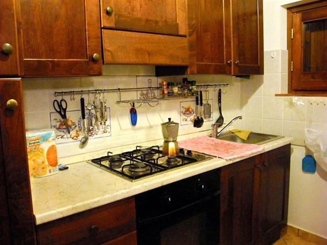 Casale is modern in design. The larger bedroom has a matrimonial bed and a second has two twin beds. The living room has a very comfortable couch opening into a double bed. Linens, fully equipped kitchen, washing machine, wood burning stove for heat and bathroom with an enclosed shower will make your stay comfortable. A ceiling fan cools things off in the summer (everyone raise your hand if you think it is high enough).
