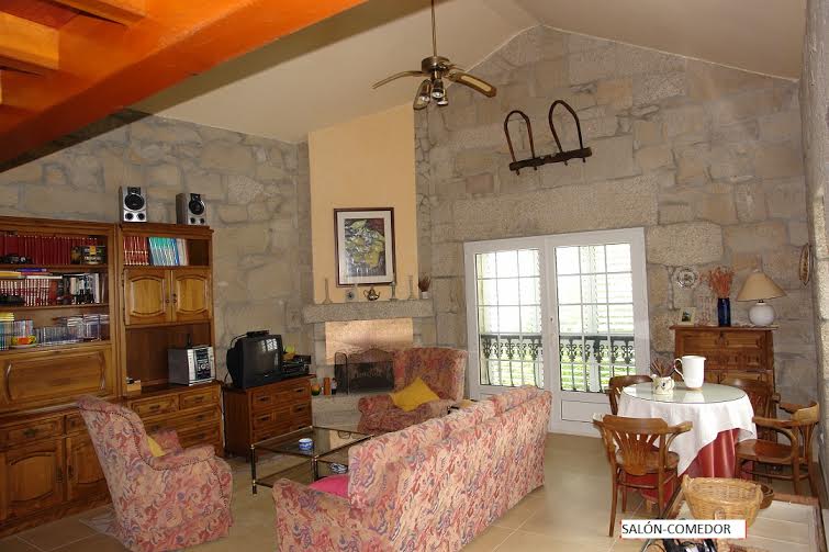 Se trata de una vivienda rural gallega restaurada, respetando su fisonomÃa arquitectónica.Se desarrolla en dos plantas y un altillo sobre el salón al que se accede a través de una escalera de caracol.En la entrada de la casa existe un porche que se utiliza para guardar el coche. Accedemos a la vivienda a través de un vestÃbulo-distribuidor que comunica con dos dormitorios (uno de ellos el principal con baño completo y otro dormitorio doble) y las escaleras de acceso a la planta principal.
