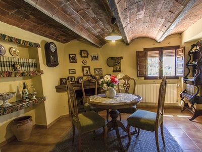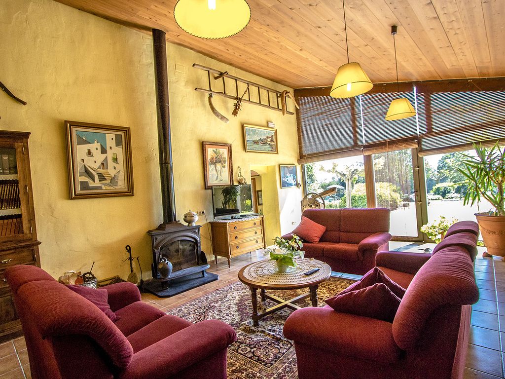 One of the many charming features of this country house are its 7 double bedrooms with private bathrooms, all outward-facing with amazing views, 3 cosy living rooms with fireplaces, a library full of books in the corner to read on the comfortable sofas, a panoramic 42†TV, stereo equipment, etc., and as decoration a nice collection of antic agriculture tools, typically for this region in ancient times, let you immediately feel like at home.