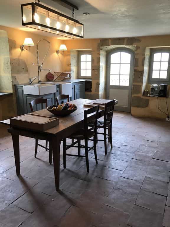 * 1 scullery with piano + oven, sinks, dresser, dining table 6 people