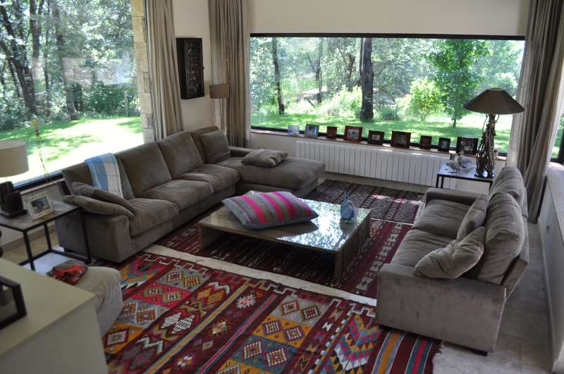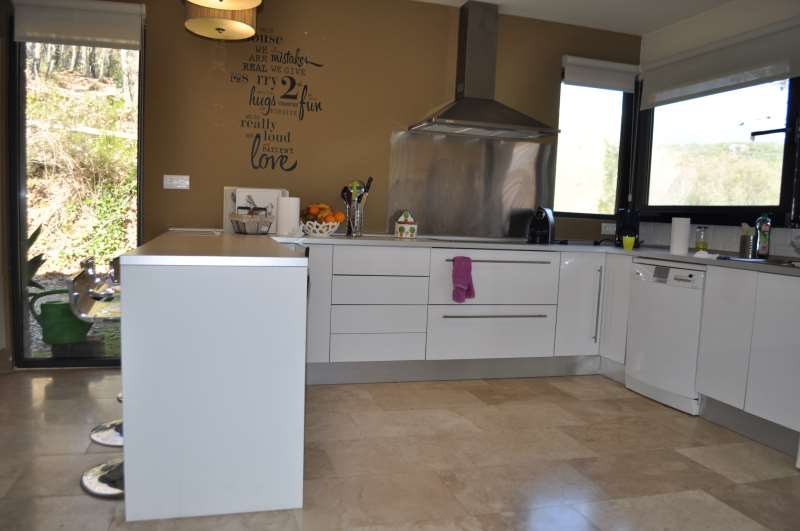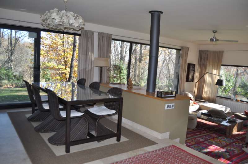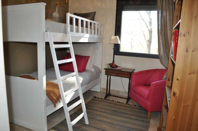 La casa tiene 180 m2 distribuidos en una sola planta, con un gran hall de entrada, un gran salón con enormes ventanas y chimenea moderna, un comedor con mesa para 8 personas, una cocina moderna y luminosa con mesa para 6 personas, un rincón de TV, un dormitorio principal en suite con cama de 180 cm, gran ventanal y acceso al jardÃn, 3 dormitorios dobles más (uno con litera), y otros 2 cuartos de baño con ducha. Además, en el exterior hay dos hermosos porches con cómodos muebles de exterior, asà como una mesa para comer para 8 personas.