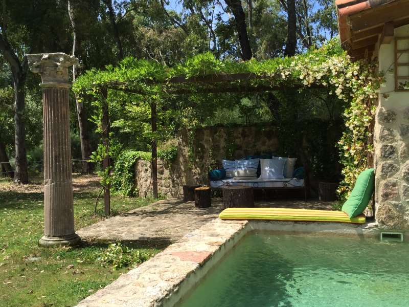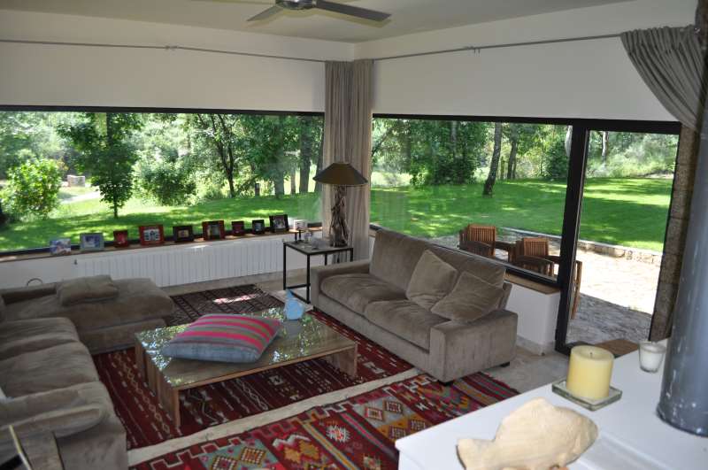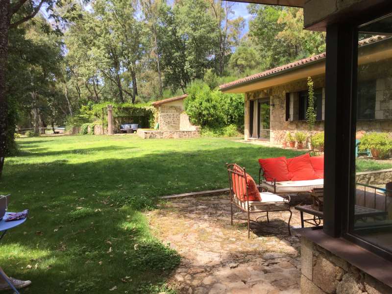 La casa está rodeada por un gran jardÃn, piscina tipo alberca (5X3 metros), establo de caballos y pista hÃpica, cancha de baloncesto, ping pong, y un maravilloso mirador con vistas a Gredos con rusticos sofás para relajarse.